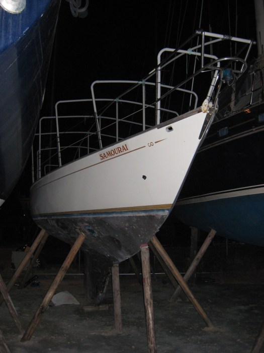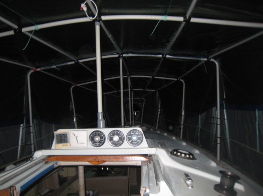 It took us approximately 5 days to cover the whole boat. It was ready just on time, before the approach of the first serious depression. So the deck was well protected for winter !
