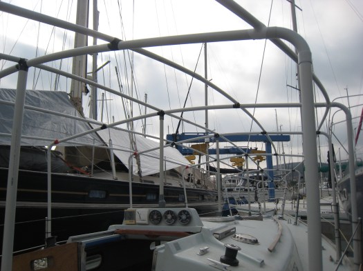 We started building up a structure made of PVC hoses and plastic covers to keep the deck warm and dry during the winter months. This protection proved to be a very clever idea which enabled us to work on deck no matter what the weather conditions were.