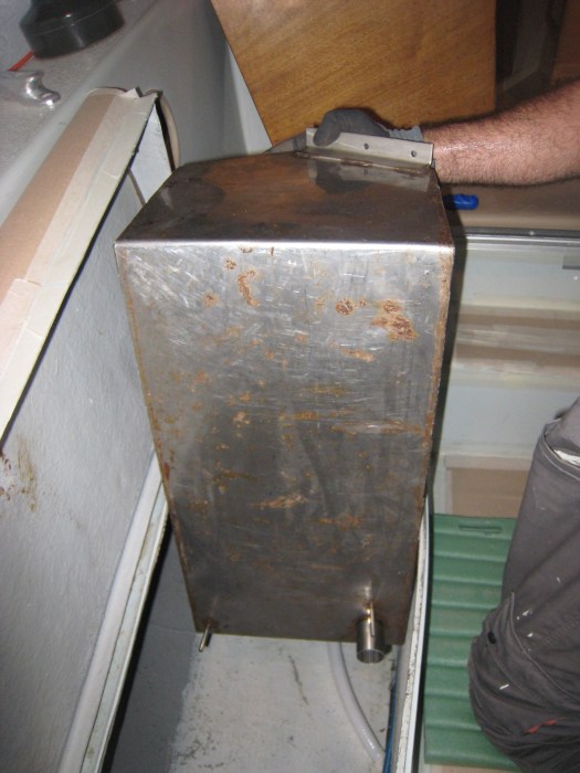 Next thing was to remove the diesel tank from the cockpit locker. The Contessa 32 forum was really helpfull on this .