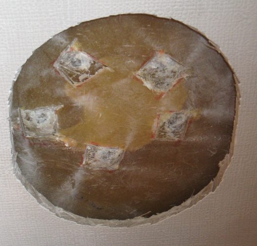 To dig out the bolts from the polyester, we used a chisel and a rubber hammer.