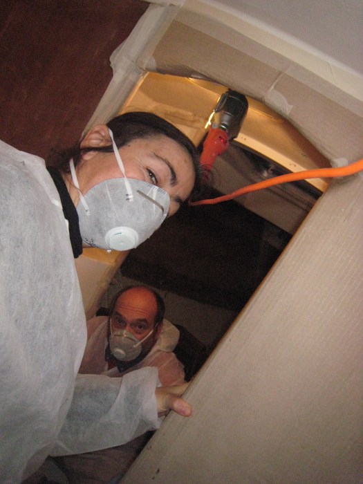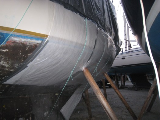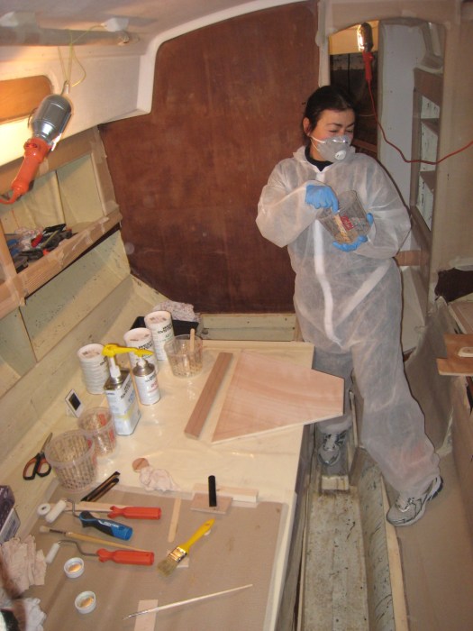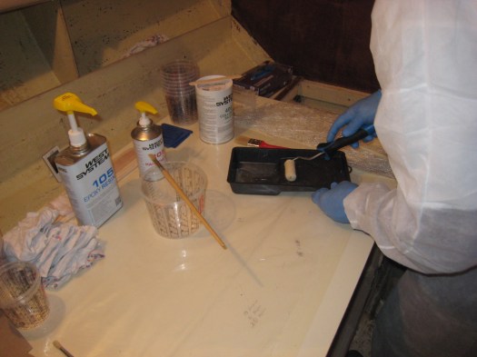 The weather was getting a bit warmer so we left aside the carpentry and started preparations for the first epoxy works that had to be done before it got too cold.