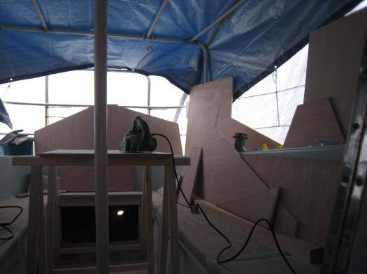 Then we cracked on the woodwork in the saloon area with a huge template for the starboard berth.