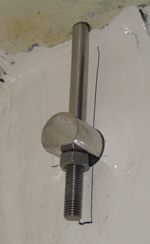 These are the U-bolt holes. The new upper shrouds U-bolts were actually fitting in the same old holes. But the lower shrouds U-bolts have a wider spacing than the old ones. To avoid drilling 2 new holes for each U-bolt, we only filled up 1 of the 2 old with epoxy resin + silica. The next day, we drilled through the filler matching perfectly the U-bold width. In practice, the new lower shrouds U-bolts were moved a few mm but makes no difference for the stays. This job was well documented on the CO32 forum and it helped us a lot to avoid any mistakes.