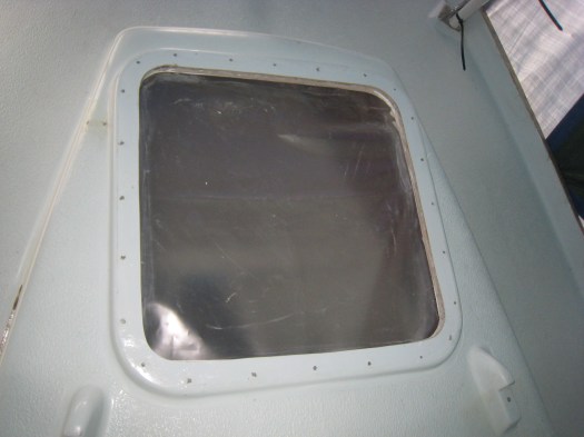 Anyway, we cleaned all the area around the hatches frames and filled up the old holes with epoxy filler.