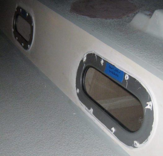 The longer windows, the ones above the galley and the chart table were more complicate to fit. We found out after bonding the inner moulding with the deck, that these two windows were not matching exactly the deck curve. When fitting the windows temporally there was a void created on the sides. We decided to use a rubber gasket of 3mm to make sure the window will not brake when screwed on.