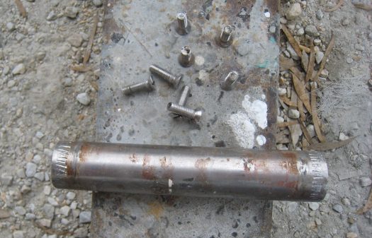 A serious pain to extract this huge stainless rod and to find out the two holes in the hull !