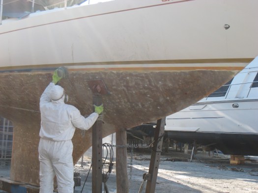 Afterwards, we had a nasty surprise on the stern….that was worst than the waterline. With the use of a moisture meter, we found out that the stern area, were the fairleads are supposed to be, was quite damp.