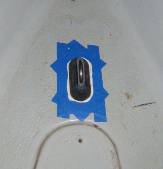 This is the area in the middle of the deck were the mast go through. We had to make some leveling with epoxy to make sure the new deck ring is nicely flat on deck. This repair was absolutely not structural, but the new deck ring had to marry exactly the shape of the deck.