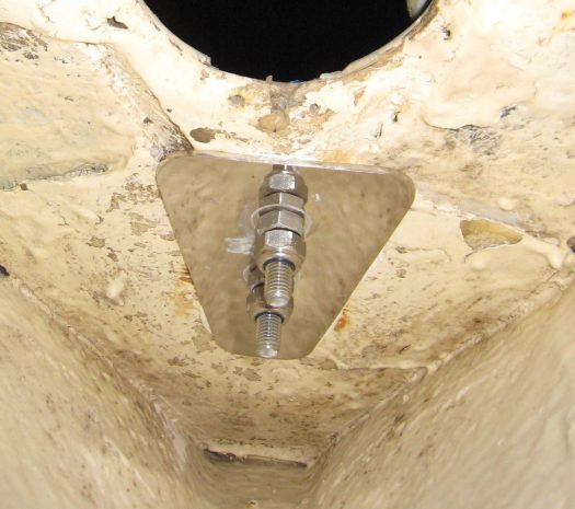 So we chose to fit this U-bolt at this point with another stainless backing plate. We will see in the future if that was a good idea. This is were the second forestay will support the storm gib…hopefully quite a rare situation…