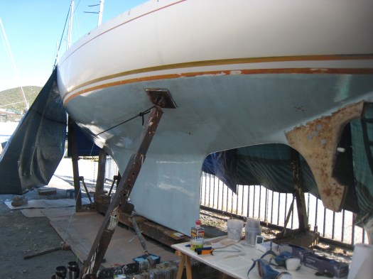 We returned to the boat in the beginning of October anxious to proceed with the filling up of the keel and start the hull treatment.