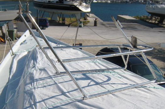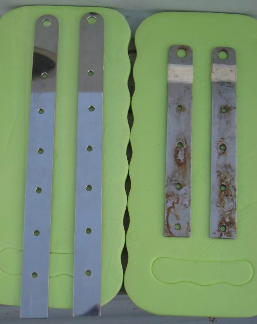 Those are the stern chainplates. The old and the new ones. These parts were easy to manufacture here in Greece. We did choose to make them slightly longer, thicker and add a couple of holes, just to be on the safe side.