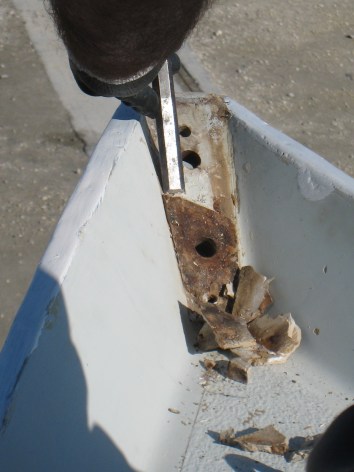 This filler had to go away and the area had to be prepared for the new stainless steamhead.