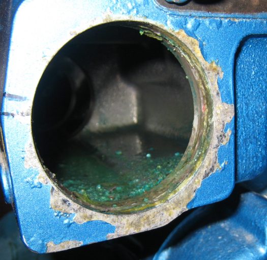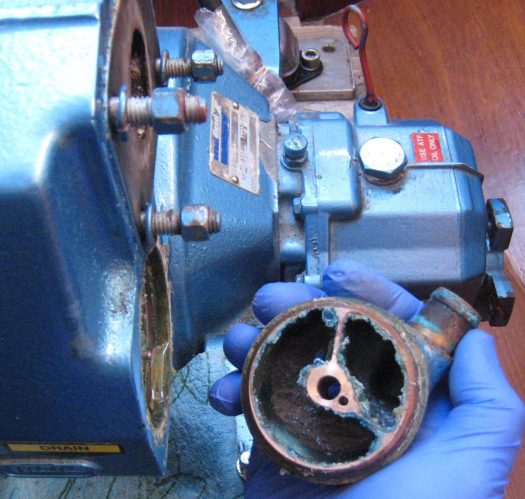 Four pieces of old impeller hidden inside. A serious obstruction to the cooling system !