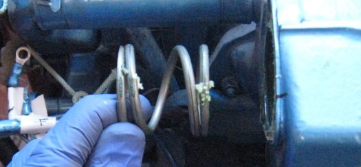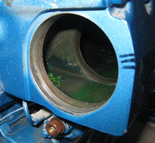 On the back of the heat exchanger, we could spot signs of corrosion. That is the weak point of this engine. It seems that the o-ring insulating the copper tube from the bronze cap doesn’t do its job properly. Fortunately on french sailing forums we found a lot of informations about this issue. It looks like this problem is pretty common on some Nanni models.
