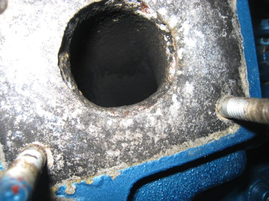 The other area which was deteriorated was behind the flange of the exhaust elbow. A common place to corrode due to the warm salty water coming out. We must admit we were expecting to find these parts in a worst condition. Nevertheless, it seems that new alloy materials are much more sensitive regarding corrosion when compared with the older marine engines.