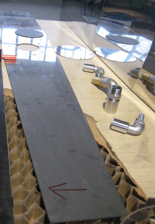 To make sure the two beds were at the same height, we used a small spirit level taped on a straight piece of aluminium. It took few corrections with the electric plane to get the perfect adjustment. Unfortunately the temperatures didn’t permit us to start the epoxy works straight away.