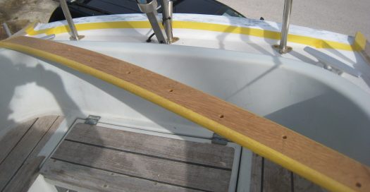 To bond the taffrail to the GRP we used 3M marine adhesive.