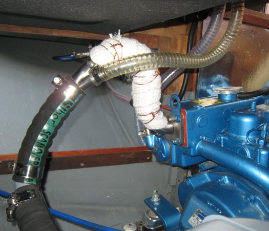 Hi, on my CO32 with a Beta 25 I had trouble with exactly the kind of hoses you have used in your setup. These hoses are not made to withstand high temperatures, and one would expect that they don’t have to, right? It’s seawater going through them, after all. However, if you are engine overheats for whatever reason (in my case I had a leak in the heat exchanger and lost water from the primary circuit into the secondary one), then the housing of the heat exchanger can get so hot that it melts those transparent hoses where they are connected to the flange. The small hole in the hose created this way was almost impossible to see, but when the engine ran it sprayed sea water all over the engine compartment, turning every piece of unpainted iron/steel into one rusty mess. I ave since changed the hose going from the heat exchanger to the anti-syphon to a heat resistant, black hose, that should be able to withstand much higher temperatures in case something like this repeats itself.