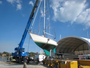 The boat was then prepared for haul out: we took both sails down, removed the spray hood and cleared up other little things on deck.