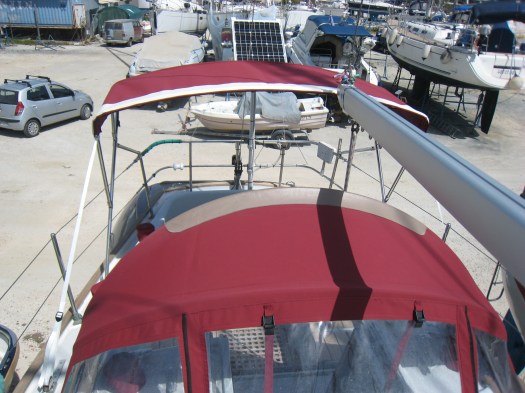As we still had a bit of time to spend in Corfu, we ordered a new Bimini Top. That would provide a bit of shade in the cockpit which was not a big luxury considering the sunburns we had the previous sailing season.