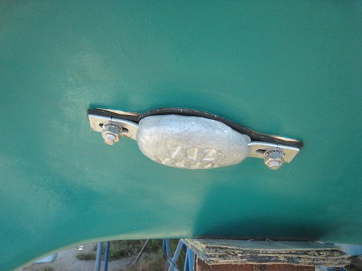 The anode was throught bolted on the starboard side of the hull close to the propeller and shaft. From inside, the stern seacocks were also connected to it with a wire.