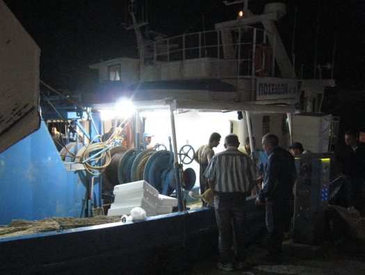 The charm of this port also lies in the fact that it is a fishermen stopover. While we were enjoying our dinner peacefully on the water front, we witnessed the arrival of 6 fishing boats almost simultaneously. All of a sudden, the village seemed to be waking up. Refrigerator trucks and vans appeared on the dock in order to collect the catch. And last but not least, the ferry that connects Ithaka and Kefalonia to the main land, arrived. In the middle of the evening, the quiet fishing village of Astakos, became a busy haven.