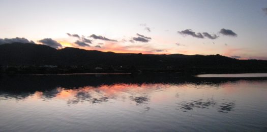 Thankfully, as we were advancing towards Lefkas, the wind died down completely. The sun was slowly disappearing behind the mountains and, as we were entering the narrow Lefkas channel, we experienced one of the most amazing twilight scenery.