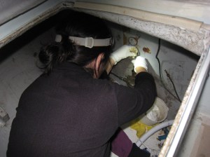 Une vielle moquette moisie faisait office de vaigrage dans le poste avant. On arracha tout cela rapidement afin de voir ce qui se cachait derrière.