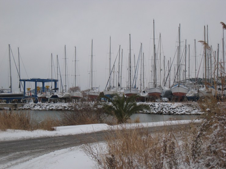Cette couverture fut collée sur toute la coque et par dessus, on rajouta encore un film plastique pour protéger de la pluie et de l’humidité. Notre voilier était maintenant près pour affronter les grands froids des Balkans.