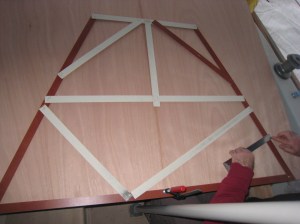 A l’aide de gabarit, on dessina la forme des couchettes. Un travail de mesure impliquant un minimum de géométrie.