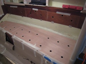 L’ensemble des couchettes et coffres furent percés de trous à l’aide d’une scie cloche, afin de permettre à une bonne aération des matelas.